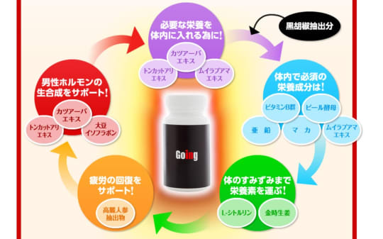 最後におすすめするのは、南米由来の植物を使用したメンズサプリ「ゴーイングプラス」。南米と聞いただけで、パワフルで情熱的なイメージを抱いてしまうのは私だけでしょうか?