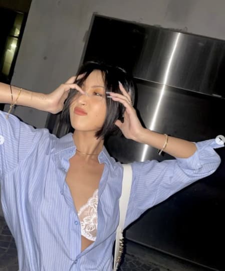 何がいいって、オーバーサイズのシャツから下が何も見えていないこと!