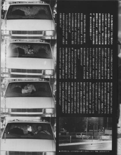 鮮明な写真は残っていませんが、車内ではキスをしたり重なりあってカーセックスをしていたという生々しい表現が…。